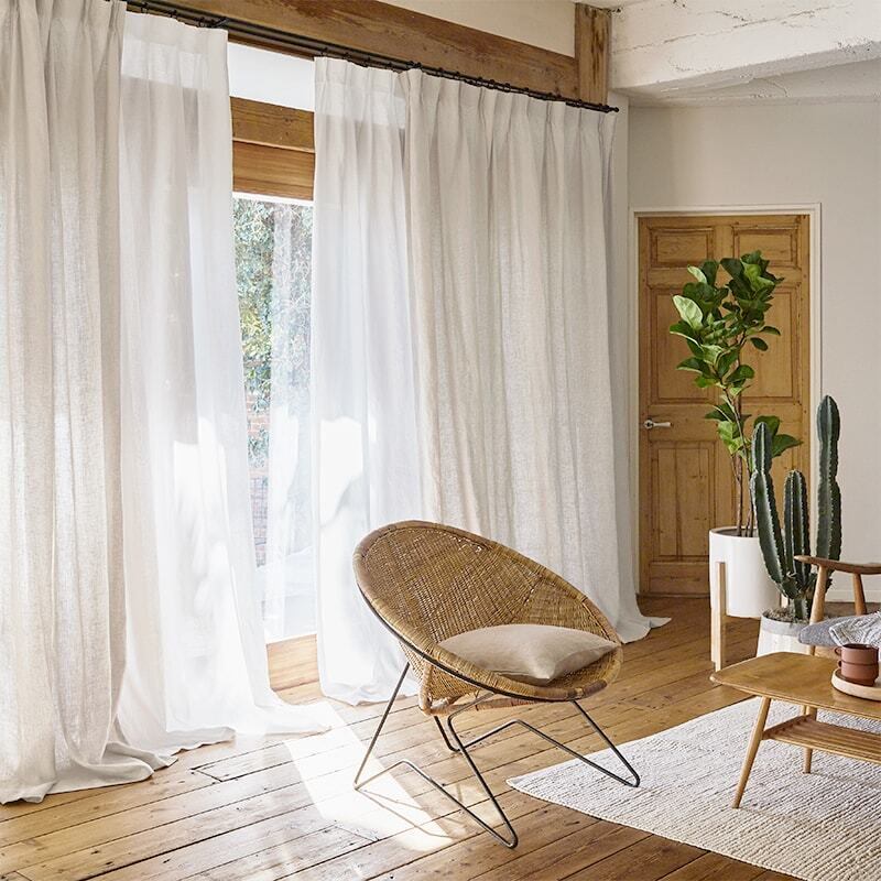 自然な光で目覚めて、気持ちよく一日が始まる。家に帰るとほっと安らぐ。リネンカーテンで理想的な一日を始めてみませんか。
